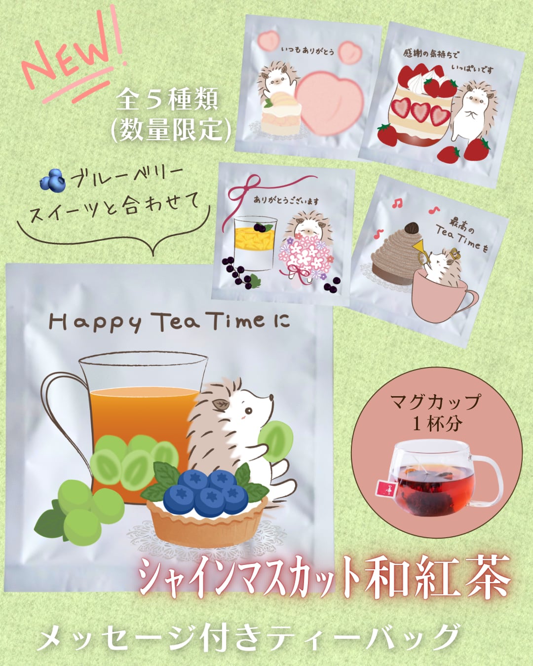 はじまりの紅茶オリジナルキャラクターが、大人気フレーバーティーでメッセージをお届けします!